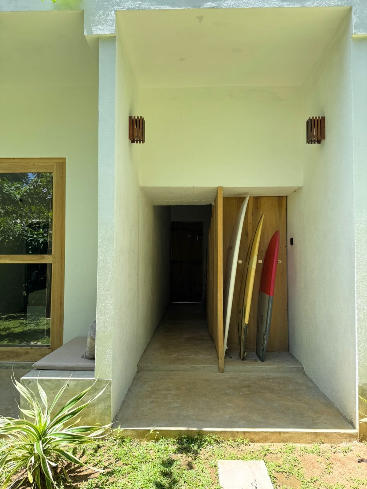 Gaia Soul is a family-run guesthouse in Kaluketiya, a quiet village on Sri Lanka’s South Coast. Guests rent the entire guest floor (private rooms and bathrooms), while the pool, kitchen, and open-air living areas are shared. Just steps from a point break and with a skate half-pipe on site, it’s the perfect base for a laid-back surf and skate retreat, close to nature but not far from lively Hiriketiya.