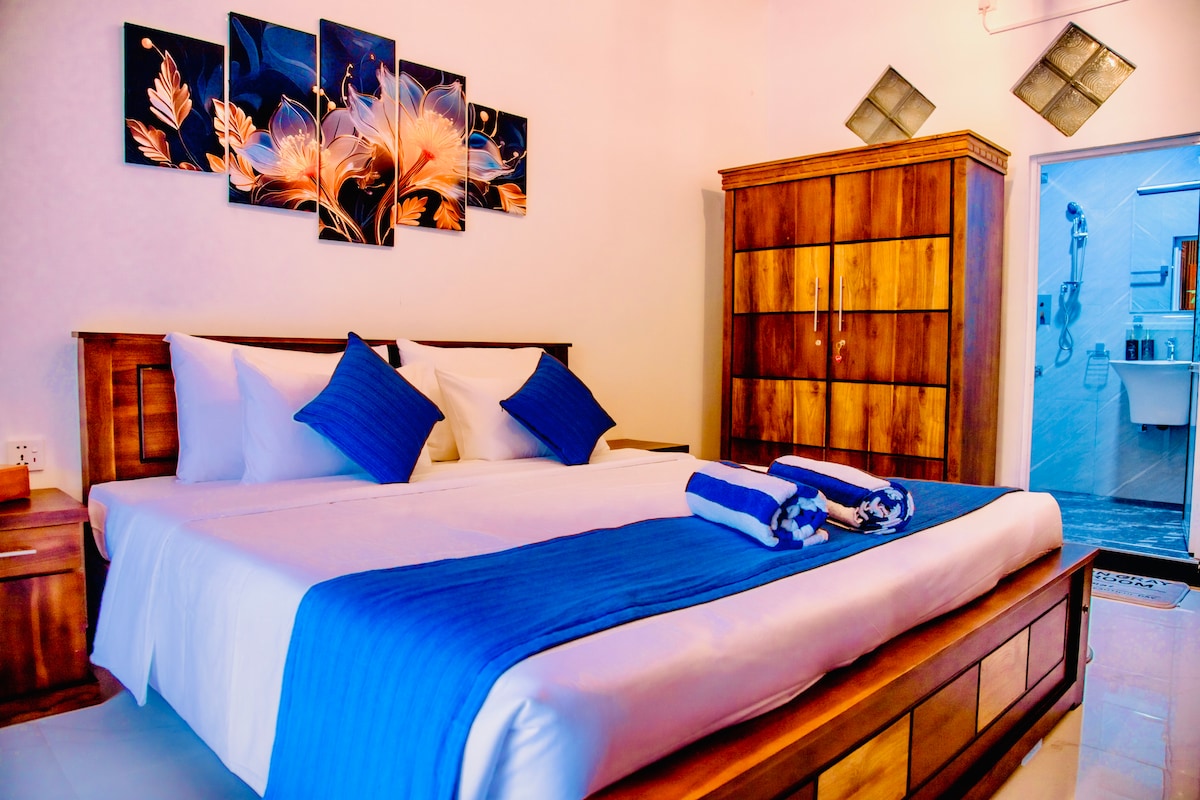 Relax in our cozy two-bedroom villa with AC, hot water, Wi-Fi, kitchen, and parking. Sleeps 4. Only 800 m from Dikwella Beach and 1.2 km from Hiriketiya Beach — perfect for couples, families, and small groups. Enjoy private, peaceful surroundings, freedom, and open spaces in nature. Airport pickup, safari/transfer, and meals/drinks available for an extra fee