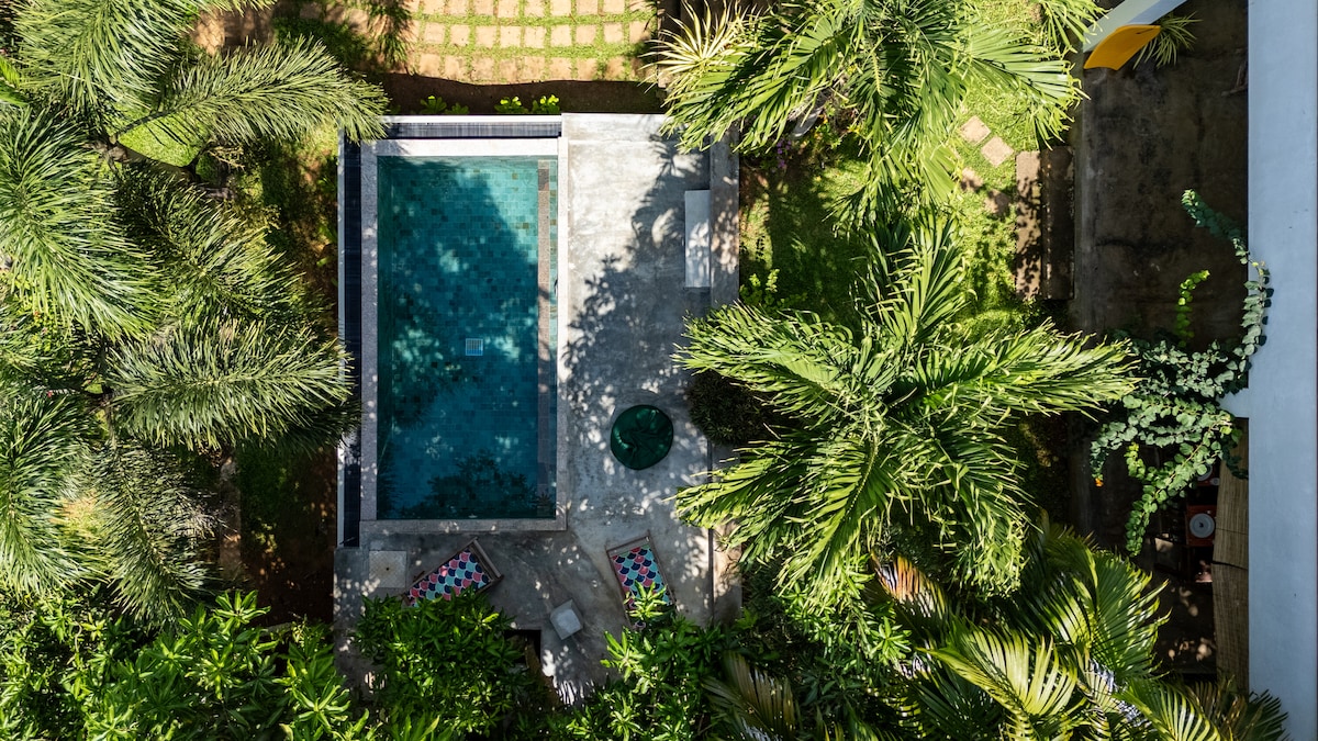 This uniquely designed one-bedroom villa with a private pool offers complete privacy and comfort —making it the perfect retreat for couples and honeymooners. Huge window fronts throughout the villa open up to lush jungle greenery, giving you the feeling of sleeping in the heart of nature while staying protected and fully comfortable with air-conditioning. Nestled in the tropical heart of Madiha, Sri Lanka, this peaceful escape blends raw natural beauty with luxury and seclusion.