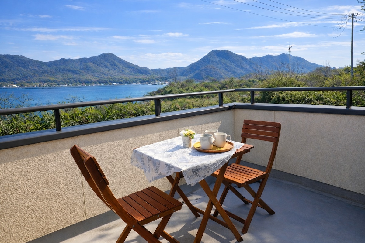 岛屿之旅滨海道岛屿独立屋| 可从露台俯瞰海景的房屋 | 因岛潮风民宿 | 距离海边 5 分钟 | 4 月开业