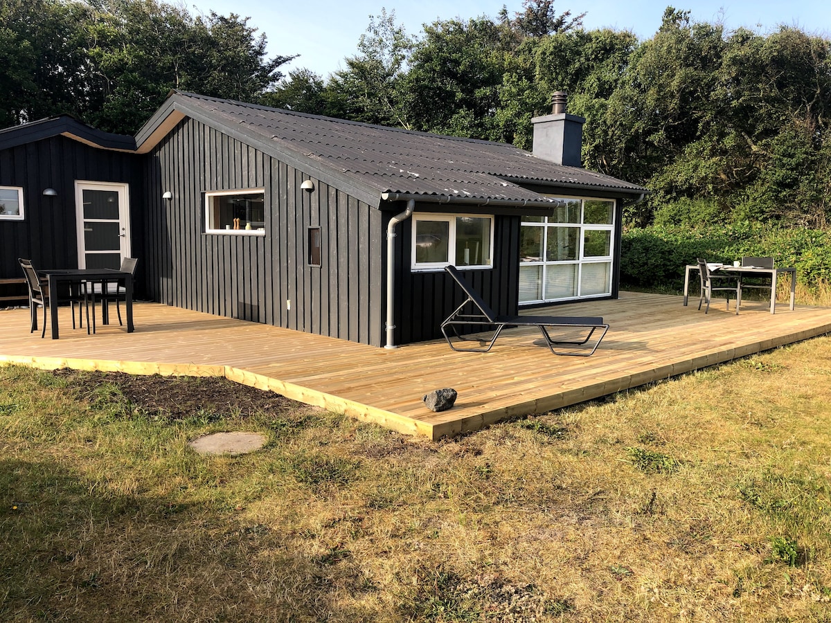The cottage is located on the West Coast within walking distance to the beach, dune plantation and the cozy beach town Tversted. The house - which is year-round insulated is located on a large 3000 m2 of undisturbed land with views of large protected natural areas. The cottage is fenced - with a large area, and you can therefore let your dog run free. NOTE: From May to August, the tent is open and there is therefore the possibility of 8 overnight guests. See profile at insta: tverstedhus