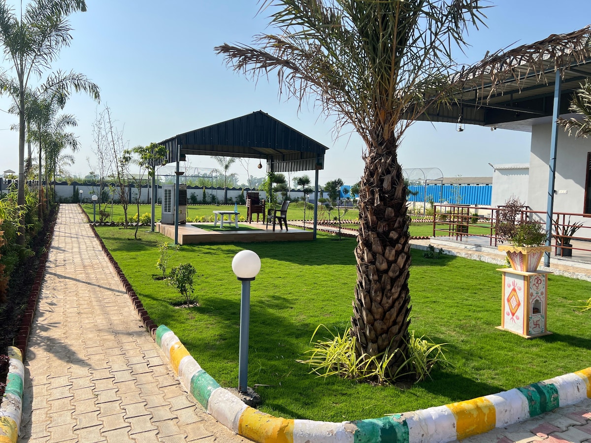 Unwind in the lap of nature at our cozy farmhouse, complete with a private jacuzzi for ultimate relaxation and much more. Surrounded by greenery, fresh air, and endless peace, this retreat blends rustic charm with modern comfort.