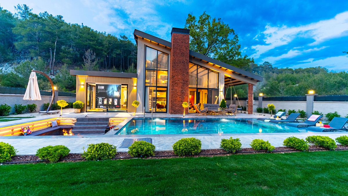 Escape to a world of elegance and sophistication , where you'll feel like royalty from the moment you arrive. Perched high on the breathtaking slopes of Babadag Mountain, in Ovacik’s most exclusive neighborhood, this stunning retreat offers the perfect blend of serenity, style, and indulgence. This villa is also featured on known Turkish TV channel Tv8 international
