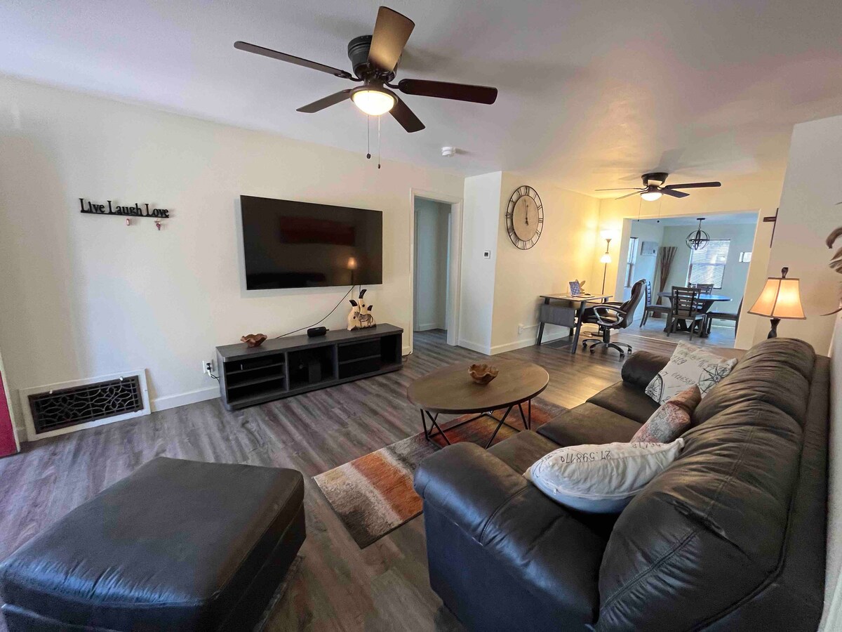 Beautifully Renovated Park House for Leisure or Extended Stays. Immaculate Non Smoking Home with Modern and Vintage Charm. Located in a quiet neighborhood that combines privacy and a range of fantastic amenities to enhance your stay with an unbeatable location. House has a Large King Master Bedroom with Flat Screen Smart HD TV, Bathroom with Shower, Spacious Living Room with Flat Screen Smart HD TV, Private Office, Dining Room, Modern Kitchen, Laundry Room, 1 Car Garage for a Sm-Md size vehicle