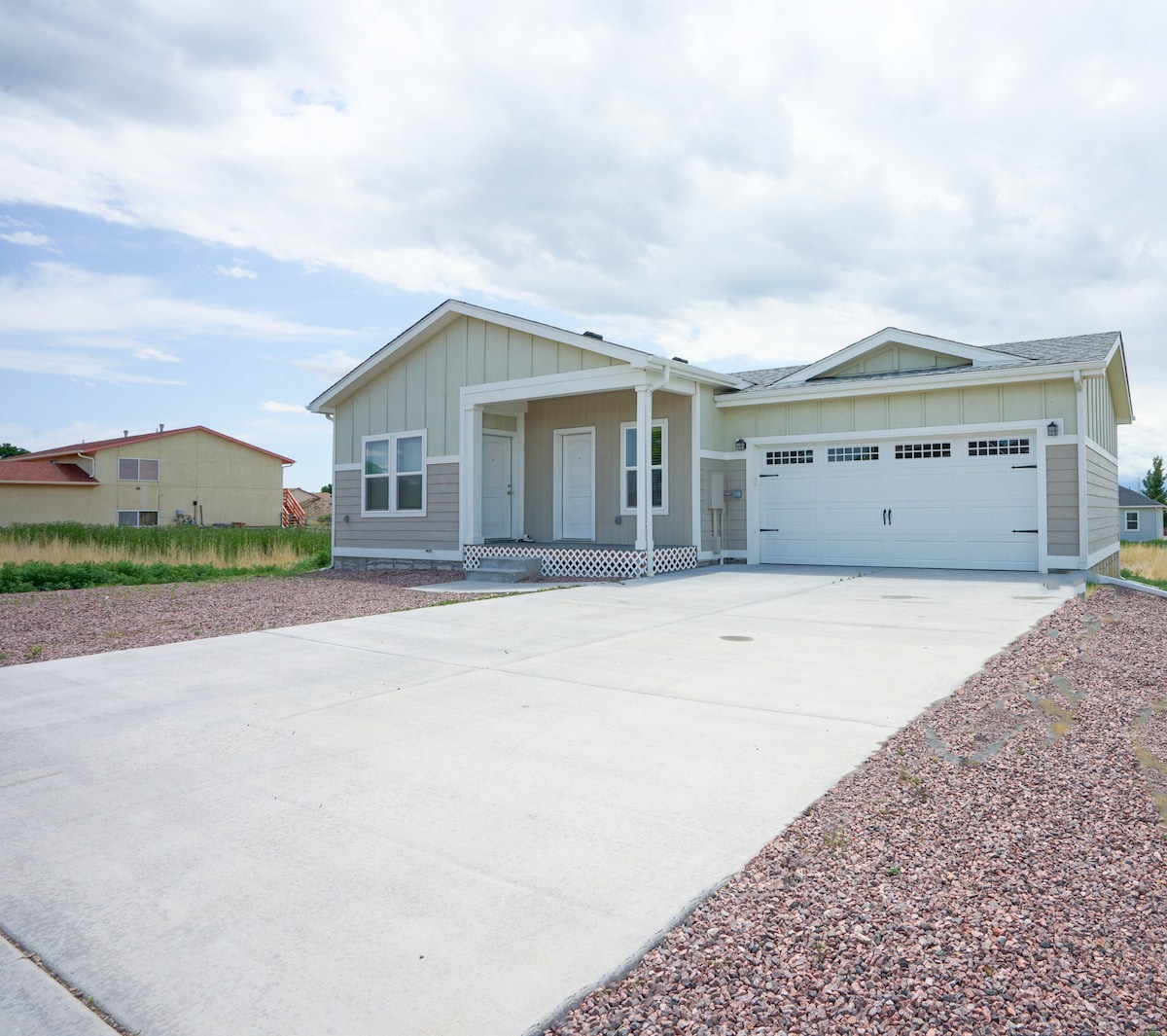 No cleaning fee! Pet friendly! A spacious open-concept, newly built and fully furnished 3 bedroom, 2 bath duplex unit. Located in Pueblo West, 5 miles from the fun-filled Reservoir, 10 mins from Parkview Hospital Pueblo West, and 11 miles from historic Downtown Pueblo. Nestled among incredible mountain views and amenities including coffee shops, restaurants, shopping, library, golfing, and walking & biking trails. Southern CO has endless outdoor activities to enjoy when you're visiting us!