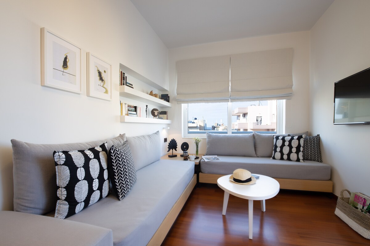 Luxury apartment with sea view of the Venetian fort "Koules" and the old port. Modern and elegant spacious and shiny two bedroom apartment in the heart of the city, within walking distance of all major attractions, historical sites, restaurants, shopping and night life that the city has to offer. Its unique location, smart design with the highest standards provide a comfortable home and a great experience for all guests.