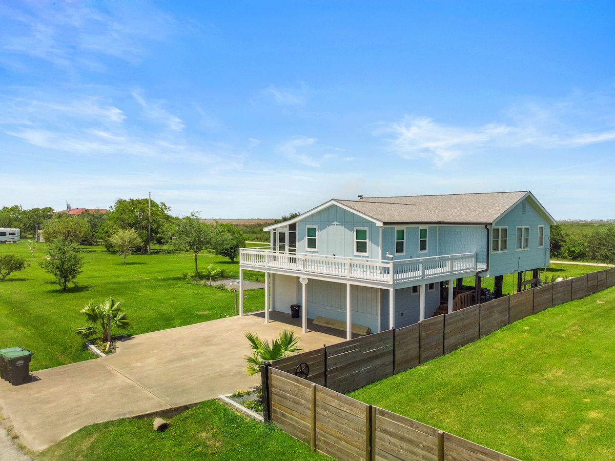 Our Kemah Bay Retreat is only a 2-3 minute walk from the Kemah Boardwalk and Lighthouse District! You're steps away from family entertainment, shops, restaurants and bars. At the waterfront house, enjoy the sight and sound of the bay from boats and birds passing by. Get on the water with provided kayaks and explore the coast. Fish from our private 216-ft pier. There's an elevator, EV charger, foosball, ping pong, basketball, arcade, outdoor chess/checker and cornhole game.