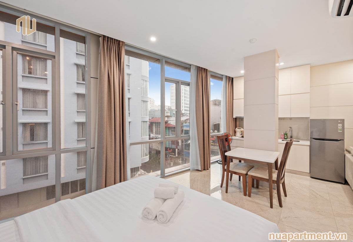 ✦Prime Location: right in the heart of the city, Reunification Palace, Opera House, Saigon Central Post Office, City Hall, Book street, Ben Thanh market,Art Museum...just a few minutes walk ✦Comfort: spacious studio, a soft mattress, king-size bed, air conditioner, private balcony&large kitchen window-full of morning sunlight ✦Bed Linen: freshly changed for every new guest ✦Convenience: 24-7cafes,restaurants, bars,ATM,laundry,convenience stores nearby ✦NO LIFT: a good chance to stay fit💪