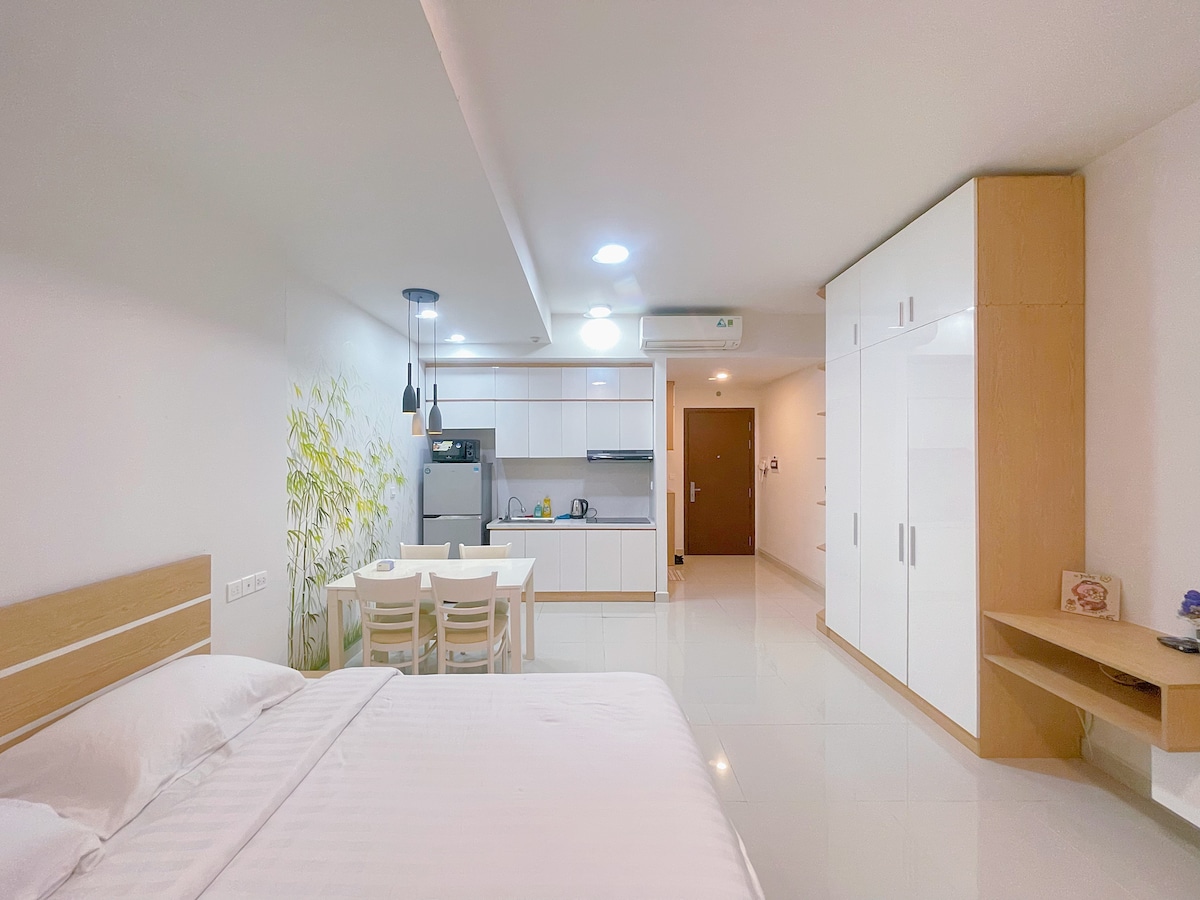 Brand New project which is located nearby with District 1 High-end and 100% newly studio with fully amenities including: infinity pool,sauna.,laundry, bathroom, free wifi, kitchen, dining table, co-working space, party room,... ★Estimated time by taxi - 10 minutes to Notre Dame Cathedral - 5 minutes to Ben Thanh Market - 5 minutes to Bitexco building - 15 minutes to The Landmark 81 building