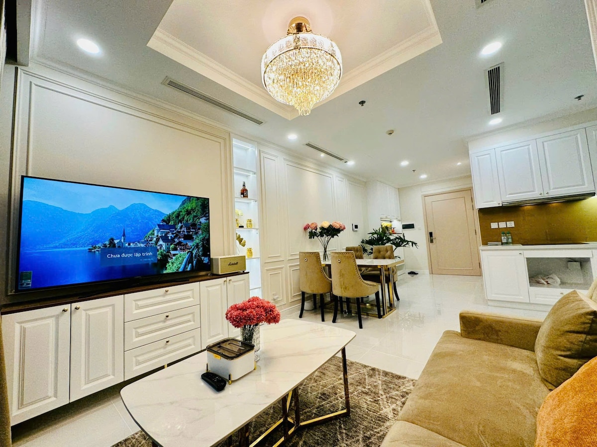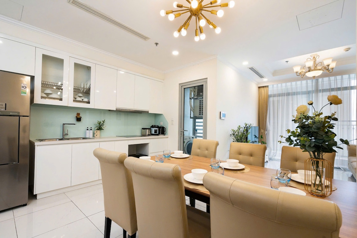 Luxury 5* The Opera Residence Corner Apartment by ChiHome - River View Bason District 1, The LandMark 81, The Galleria, The Mett Office, District 2 Sala Thiso Mall. - Tháp B, Scala, Level 1x căn số 10 - Diện tích: 70m2 (căn góc) - Bao gồm 2 phòng ngủ, 2WC, thoải mái ở từ 2-4 người. - Tivi thông minh 65inch với Netflix và YouTube - Sofa, ghế Armchair, bàn trà. - Bàn ăn 4 ghế - Đồ dùng nấu ăn đầy đủ - Internet không dây tốc độ cao có sẵn - Điều hòa nhiệt độ cho cả nhà - Ra vào tòa nhà 24/7