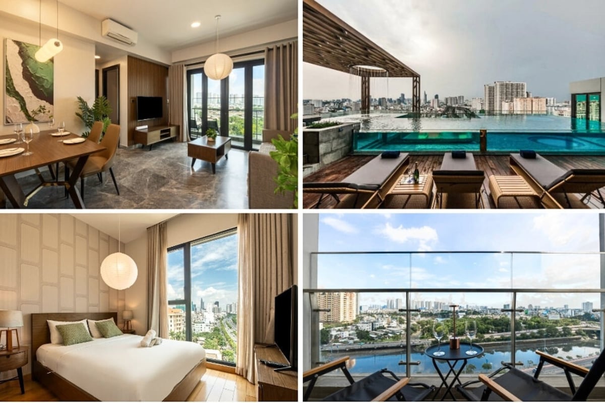 Căn hộ nằm trong tòa chung cư cao cấp, có hồ bơi trên tầng thượng miễn phí . Từ giường ngủ, bạn có thể ngắm sông Sài Gòn và trung tâm Quận 1 – tầm nhìn rất đặc biệt. Không gian bên trong được thiết kế theo phong cách trẻ trung mang đến cảm giác thoải mái như ở nhà. Siêu thị ngay tầng trệt giúp bạn mua sắm dễ dàng. Vị trí cực kỳ thuận tiện, gần các địa điểm nổi tiếng – giúp bạn dễ dàng lên lịch cho chuyến tham quan và khám phá Sài Gòn.