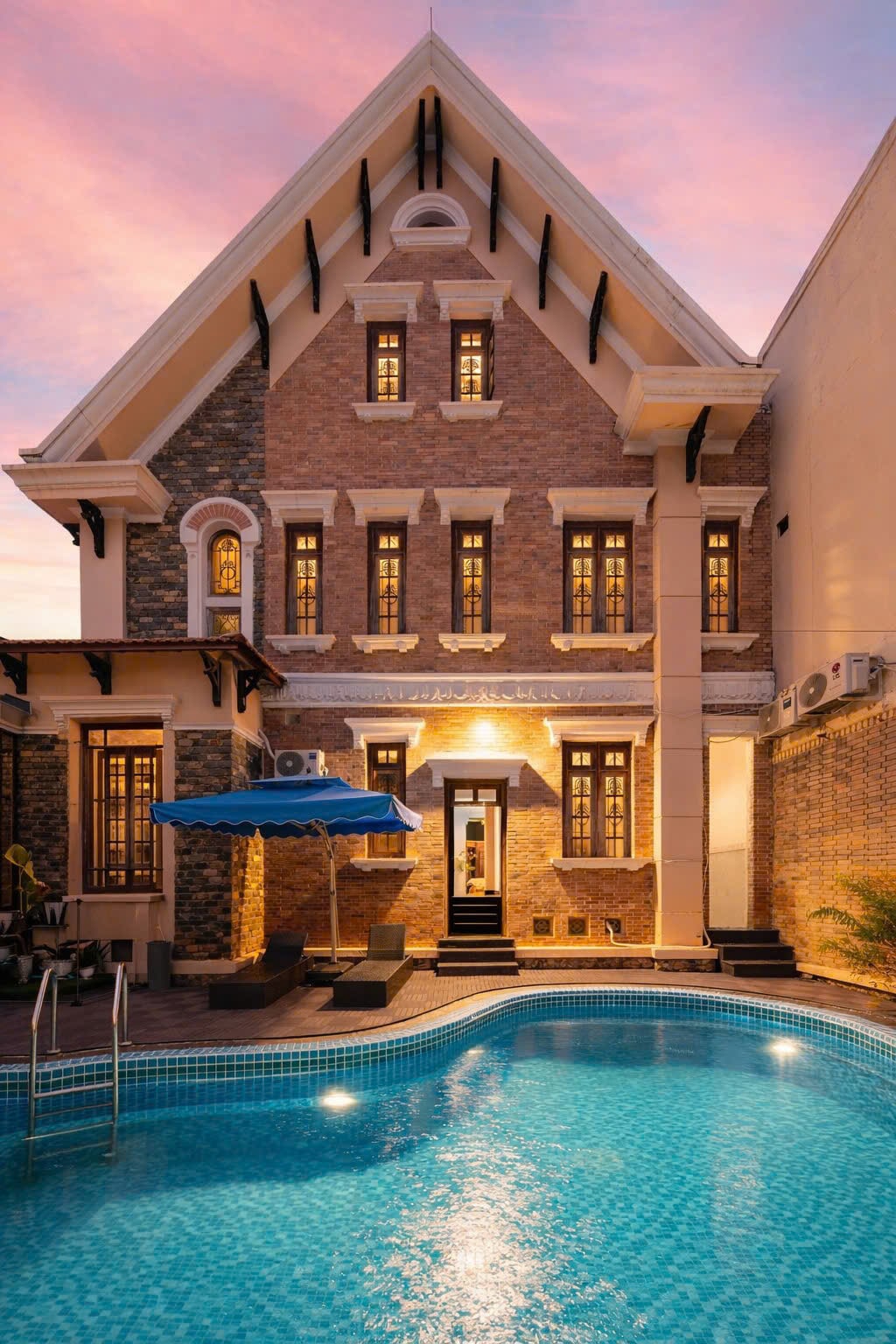 Boss River Pool Villa tọa lạc tại KDC Trung Sơn – khu dân cư cao cấp, an ninh, gần Quận 1, Quận 7, di chuyển thuận tiện. Biệt thự thiết kế phong cách tân cổ điển sang trọng, trần cao, sàn gỗ xương cá, nội thất gỗ tự nhiên kết hợp ánh đèn vàng ấm tạo cảm giác ấm cúng và đẳng cấp. Villa gồm 9 phòng ngủ – 9 giường – 6WC, không gian rộng rãi phù hợp gia đình đông người hoặc nhóm bạn. Trang bị đầy đủ tiện ích giải trí như hồ bơi riêng, phòng karaoke, bàn bida, khu BBQ và sauna thư giãn.