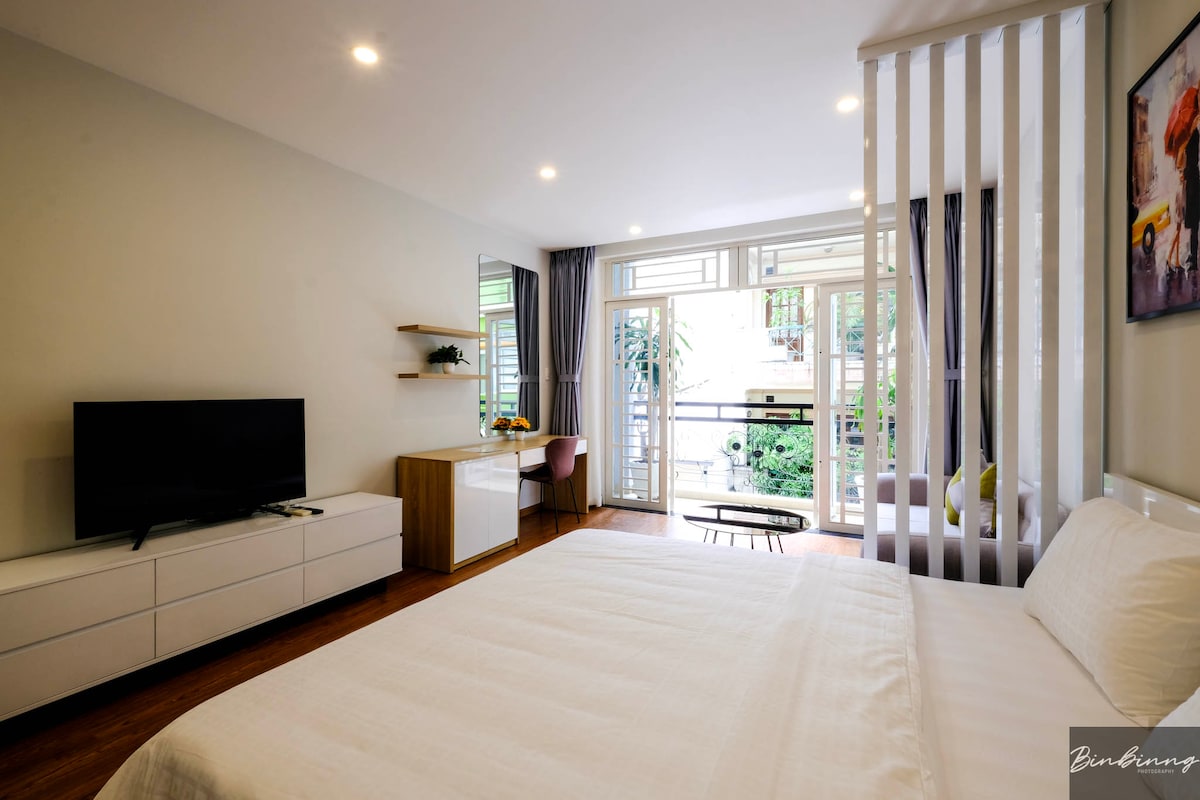 We aim to offer more than a place to sleep — it’s a space designed for you to create, unwind, and recharge Aims to provide clean and a nature-friendly accommodation with a view of the city. If you love reading books and enjoy relaxing, chill-style furniture, this place is for you. Self check-in 24/7 We’re in the city center, just 7 minutes from the Opera House and Saigon’s Notre Dame Cathedral — perfect for anyone who loves exploring the city.