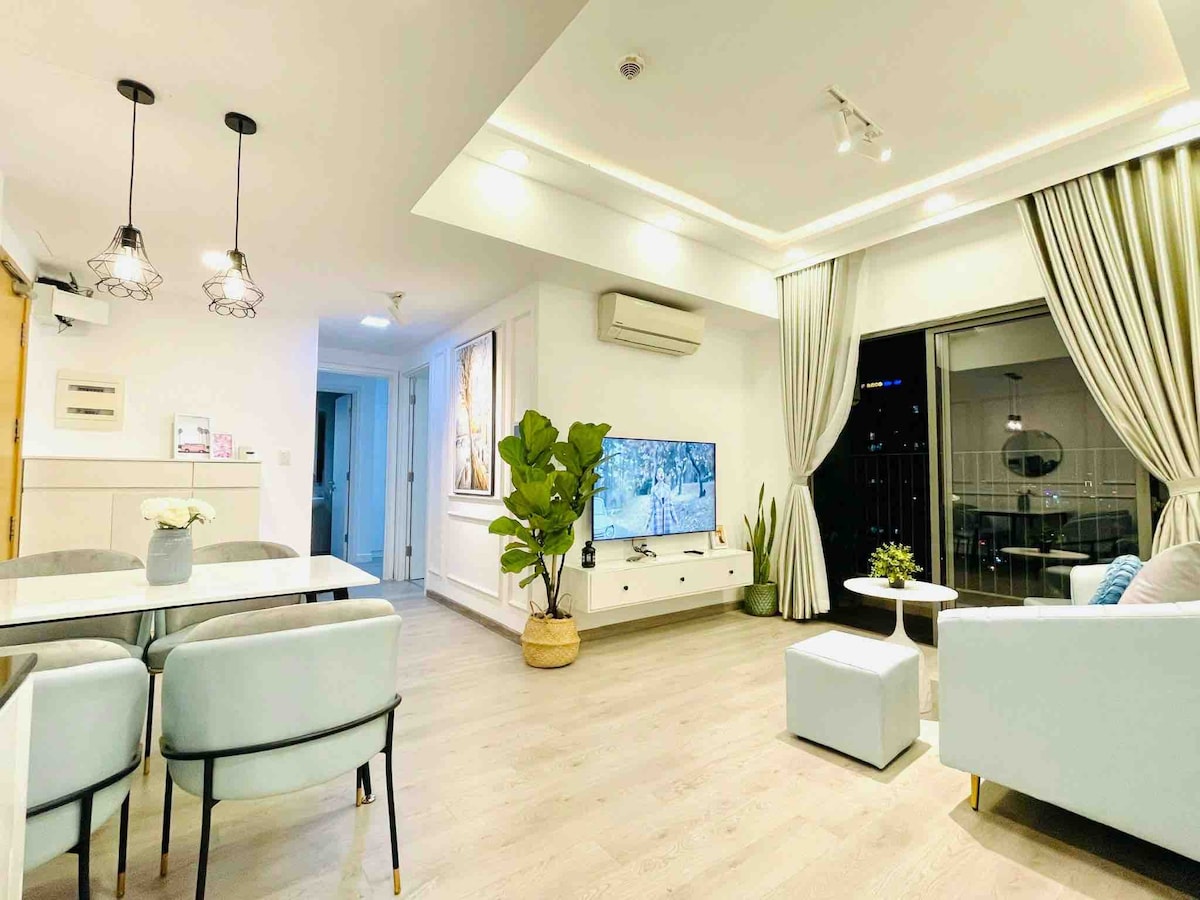 🌅 Wake up to soft morning light and lush garden views from your private balcony at Diamond Island, one of Saigon’s most peaceful and luxurious residences. With elegant décor, warm lighting, and a cozy chic ambiance, this home brings a perfect sense of calm — your quiet oasis amid the city’s vibrance. Whether you’re here for work or relaxation, every detail is thoughtfully prepared for your comfort: premium linens, a Netflix-ready Smart TV, and a fully equipped kitchen for your favorite meals.