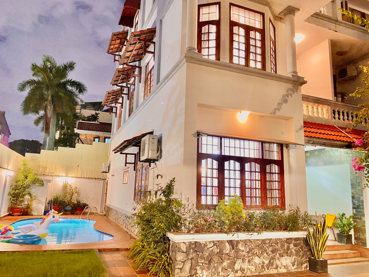 Villa sang trọng trung tâm Quận 2, TP.HCM, với 6 phòng ngủ, 7 giường,6 nhà tắm là không gian nghỉ dưỡng lý tưởng cho gia đình hoặc nhóm bạn. Villa có hồ bơi riêng, sân vườn xanh mát, phòng karaoke và bàn bi-a BBQ sân vườn hiện đại, mang đến những phút giây thư giãn tuyệt vời. Thiết kế hiện đại, nội thất sang trọng, đầy đủ tiện nghi, phù hợp cho các buổi tiệc hay kỳ nghỉ đẳng cấp. Đây là lựa chọn hoàn hảo cho những ai tìm kiếm sự thoải mái và giải trí.