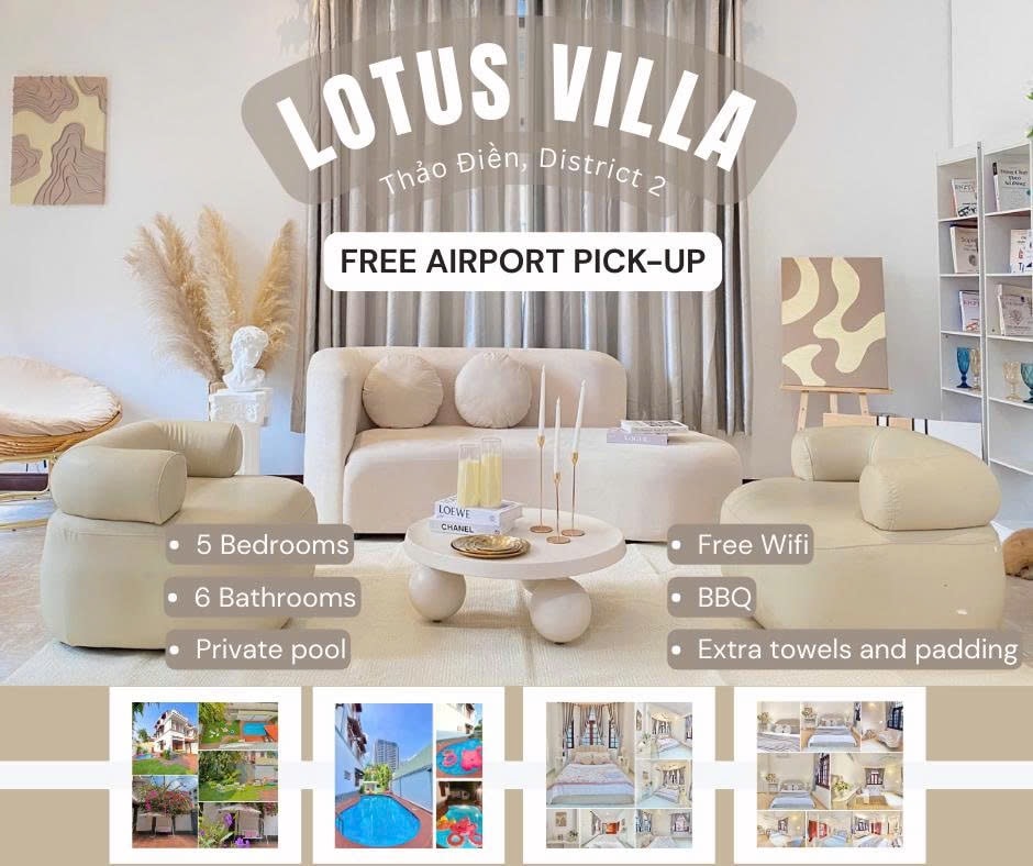 Lotus Pool Villa ThaoDien BBQ 5bedrooms 6Bathrooms