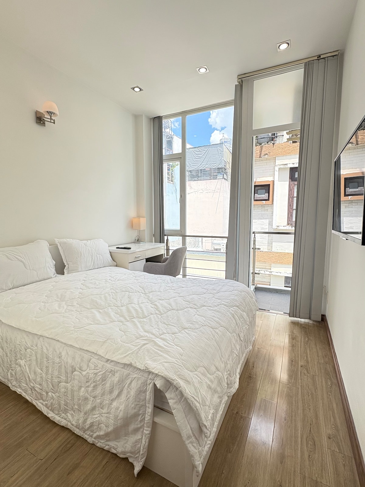 Established in 2023, We offer High Quality Short and Long Let Serviced Apartments located right on a busy street with famous cafes, restaurants, Circle K and convenient stores near by and just a few minutes walk to Bui Vien walking street, Tao Dan Park. Cost-effective compared to hotels, we provide 1 BR serviced apartments with privacy, modern style, kitchen, balcony, soundproof door & windows, desk space to work, rooftop garden, elevator, regular cleaning and the comforts of a “Home-from-Home”.