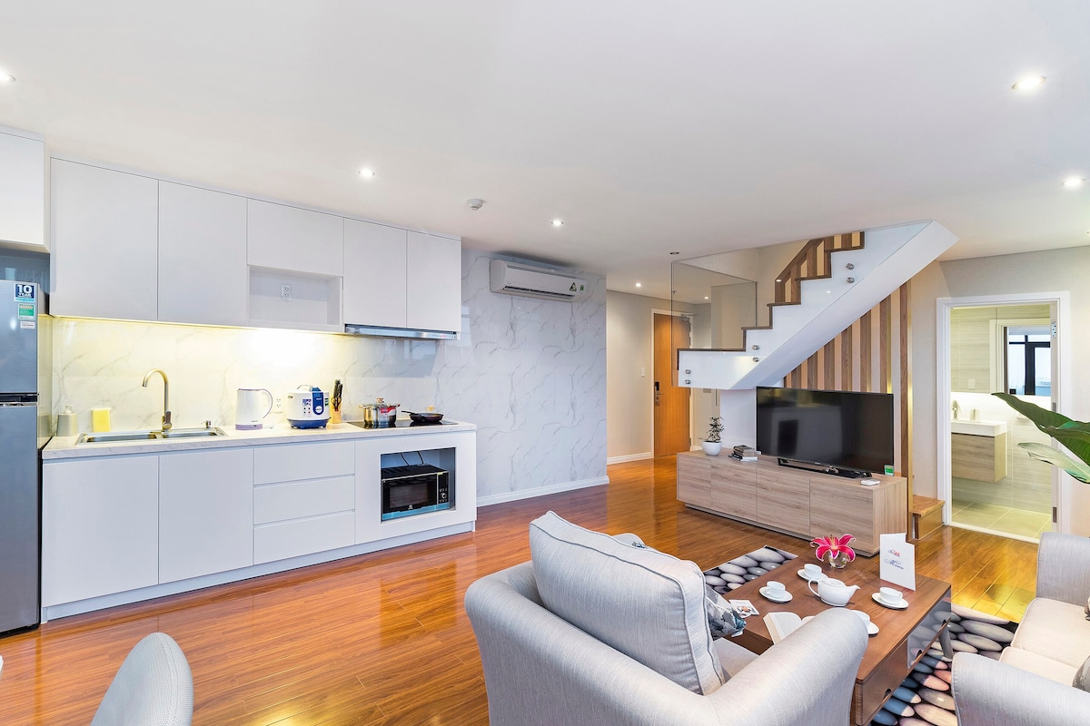 Luxury 5* The Opera Residence Corner Apartment by ChiHome - River View Bason District 1, The LandMark 81, The Galleria, The Mett Office, District 2 Sala Thiso Mall. - Tháp B, Scala, Level 1x căn số 10 - Diện tích: 70m2 (căn góc) - Bao gồm 2 phòng ngủ, 2WC, thoải mái ở từ 2-4 người. - Tivi thông minh 65inch với Netflix và YouTube - Sofa, ghế Armchair, bàn trà. - Bàn ăn 4 ghế - Đồ dùng nấu ăn đầy đủ - Internet không dây tốc độ cao có sẵn - Điều hòa nhiệt độ cho cả nhà - Ra vào tòa nhà 24/7