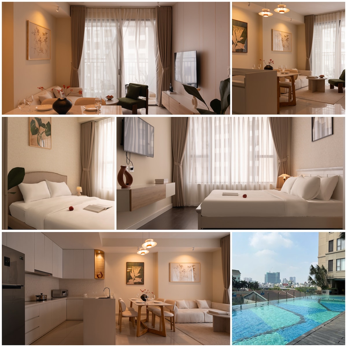 Established in 2023, We offer High Quality Short and Long Let Serviced Apartments located right on a busy street with famous cafes, restaurants, Circle K and convenient stores near by and just a few minutes walk to Bui Vien walking street, Tao Dan Park. Cost-effective compared to hotels, we provide 1 BR serviced apartments with privacy, modern style, kitchen, balcony, soundproof door & windows, desk space to work, rooftop garden, elevator, regular cleaning and the comforts of a “Home-from-Home”.