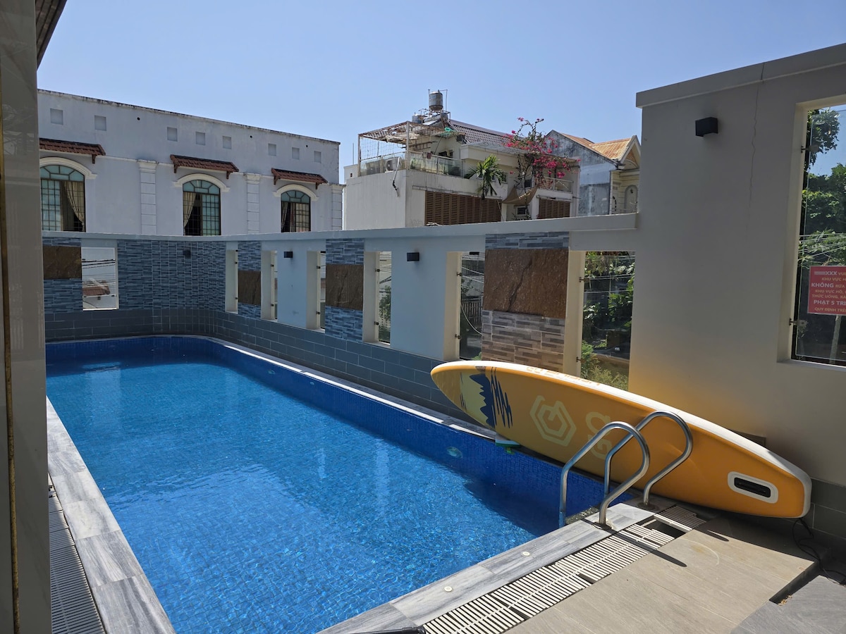 * Vị trí: Nằm ngay trung tâm thành phố biển Vũng Tàu, đi bộ 50 mét ra tới đường bờ biển bãi trước. Kế bên ga Cáp treo, gần các quán ăn Gành Hào, các quán cà phê view biển dọc đường Trần Phú. + Sức chứa: 15 - 30 khách. + Diện tích khuôn viên: 350m2. + Diện tích hồ bơi: 3mx7m. + Quy mô 9 phòng ngủ 11 giường 11WC. + Nội thất mới, hiện đại, có thang máy. + Nhà bếp trang bị đầy đủ đồ dùng nấu bếp. ** ĐẶC BIỆT có sân thượng lớn rộng rãi, thoáng mát đáp ứng nhu cầu tổ chức tiệc BBQ ngắm view biển.