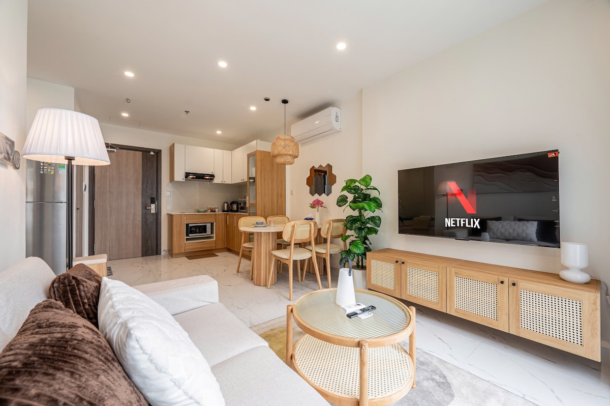 Welcome to your Scandi-modern escape at Vinhomes Grand Park 🌿 Designed for comfort and function, our 2BR apartment features fast Wi-Fi, a dedicated desk, and a full kitchen—ideal for long stays, remote work, or family getaways ✨ Whether you're here for work, extended family time, or to experience Saigon like a local, this modern 2BR is ready to welcome you☺️ 🔹 Note for Long Stays: For stays over 10 nights, electricity, water, and building management fees are billed separately based on usage