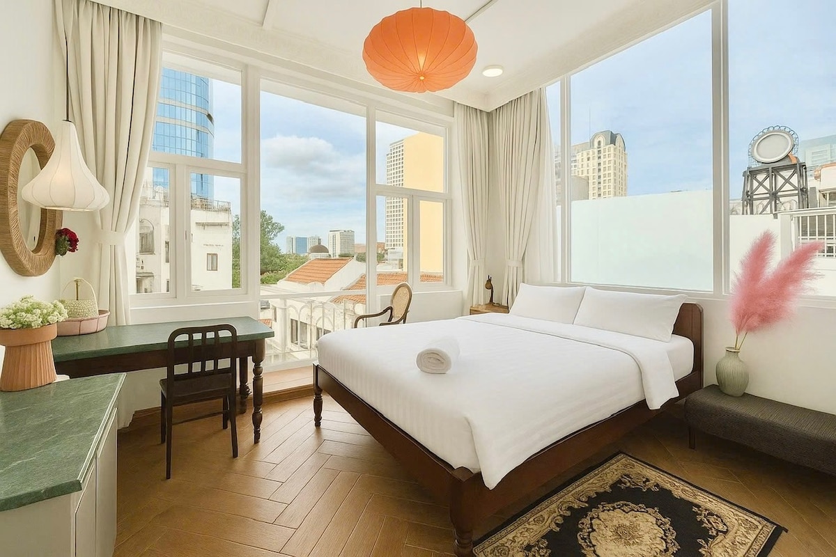 Cherry Blossom-boutique hotel chain offers an exceptional environment - well-designed rooms with high hygiene standards and a 5* luxury bedding, plushy for a peaceful sleep to embrace life to the fullest in Saigon legendary past amidst the bustling District 1. It combines affordability with contemporary allure, making it an enticing - sexy choice Cherry Blossom has crafted a haven, akin to the beauty, freshness and fragrance of a cherry blossom in spring, extending a warm welcome to its guests.