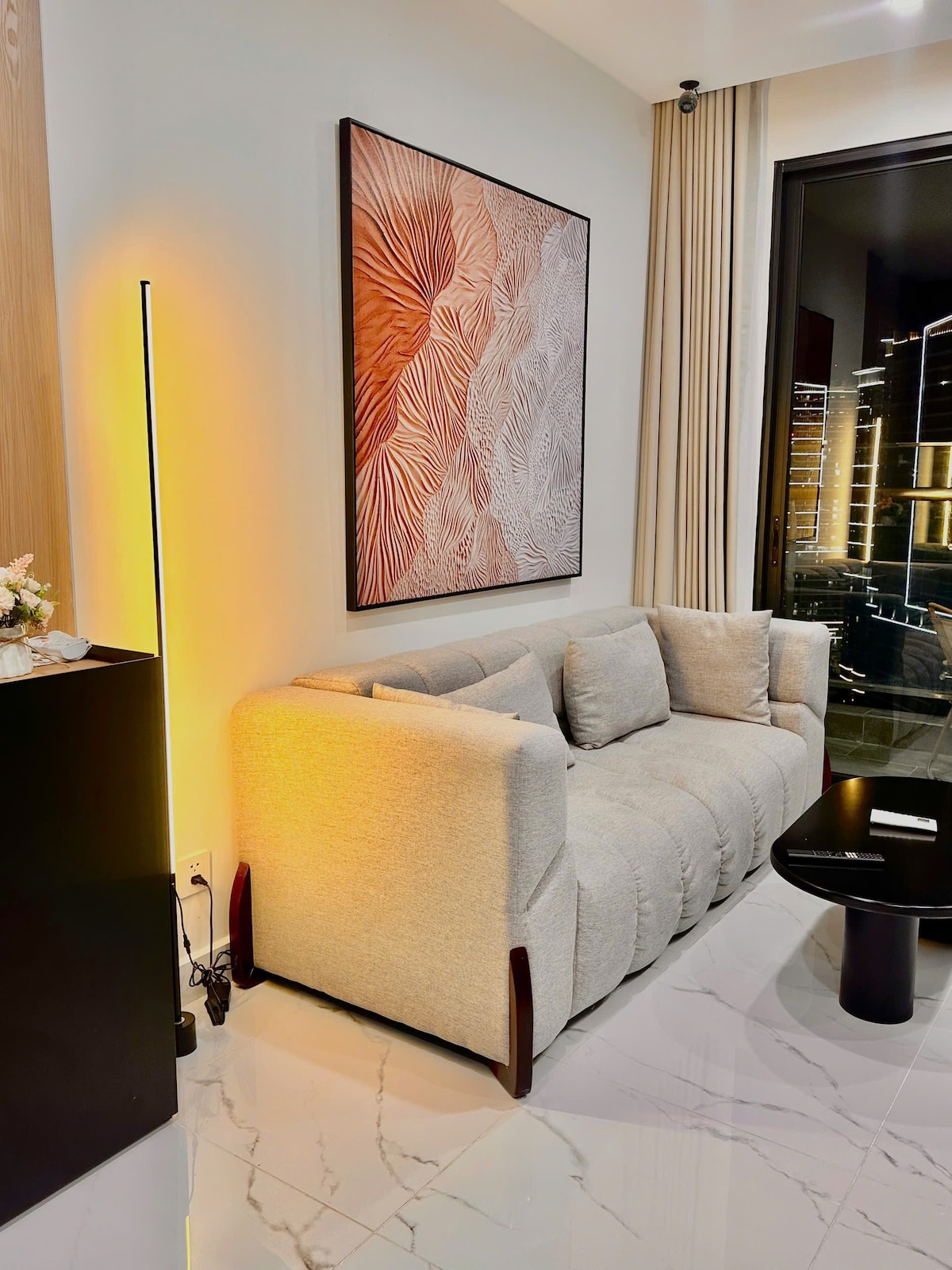 Căn hộ được thiết kế sang trọng với tầm nhìn skyline toàn cảnh thành phố, mang lại không gian thoải mái và hiện đại. Vị trí ngay trung tâm nên rất thuận tiện di chuyển, xung quanh có nhiều siêu thị, cửa hàng tiện lợi, quán cà phê và nhà hàng nổi tiếng. Có thể dễ dàng đi bộ đến công viên và nhiều địa điểm tham quan du lịch trong khu vực, chỉ vài phút đến Bitexco Tower. Phù hợp cho kỳ nghỉ thư giãn, khám phá thành phố hoặc chuyến công tác ngắn ngày. Không gian đầy đủ tiện nghi cho một kỳ nghỉ.