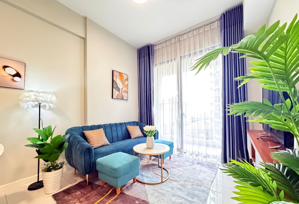 A stylish & comfortable apartment 85m2 at Hung Phuc Happy Residence Premier located in the heart of district 7, Phu My Hung, with just a short walk to all the best shops, restaurants, and conveniences. Nearest bus stop in front. Highly educated and quite neighbors that surrounded by green parks and beautiful villas. Decorated in modern Japandi x Wabi sabi style with a focus on natural materials & clean lines. A great getaway or even staycation for those who want to experience new things.