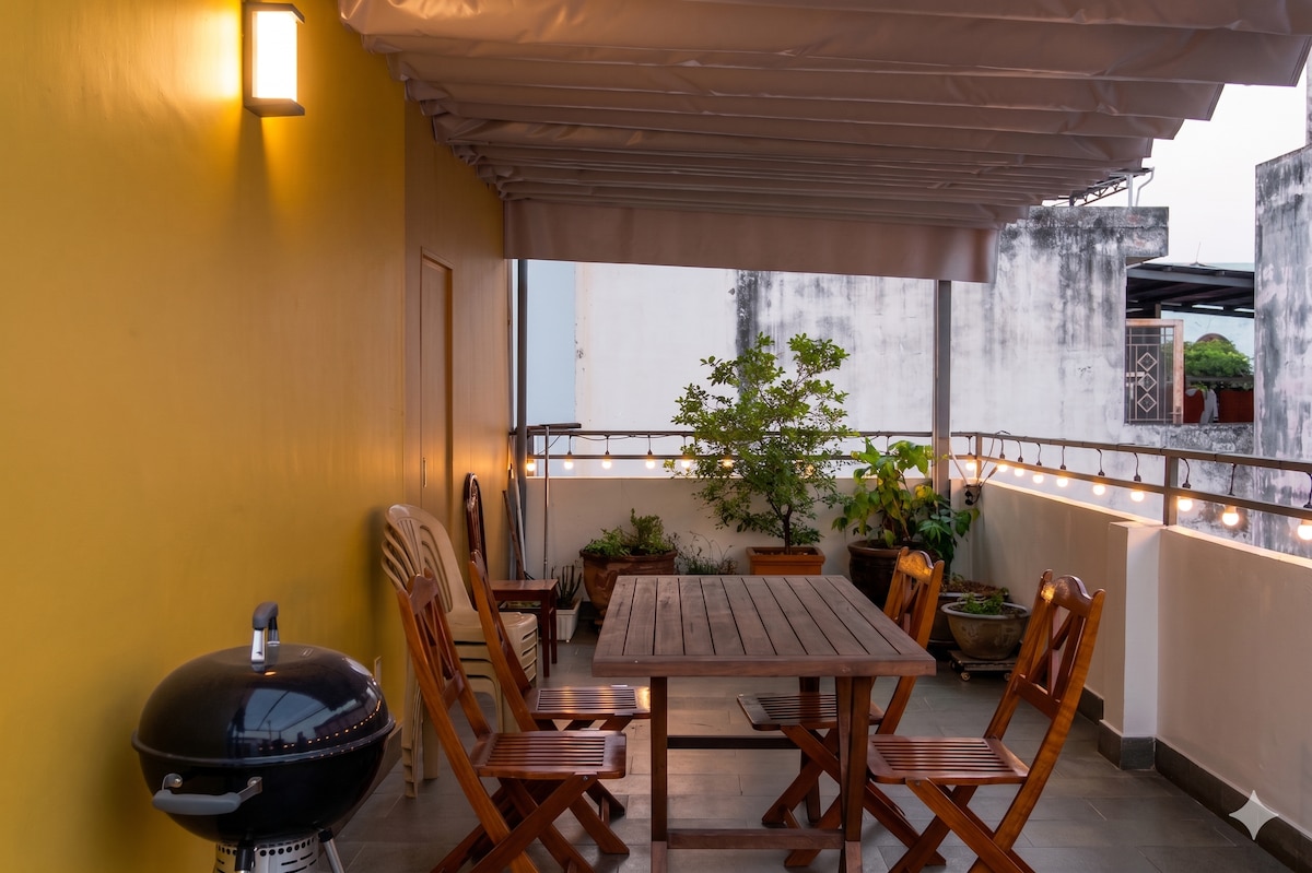 [NOTICE: No photoshoot, event or party. ID/Passports & Visa will be required for registration as per local regulations] [Không quay chụp, tổ chức tiệc hay sự kiện. Bắt buộc trình CCCD/Passport và Visa để đăng ký tạm trú] At this exquisite 3-bedroom Blue Arch suite, you’ll discover elegant local designs topped with a spree through our private rooftop garden, and convenient access to the city center. With Blue Arch, you can expect the comfort of home with contentment for a top hotel.