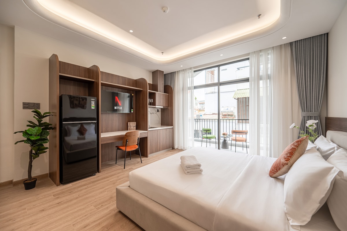 Cherry Blossom is a charming collection of picturesque apartments within a lovely townhouse, embodying Saigon's rich architectural heritage. Just a short 10-minute walk away, guests can unwind along a peaceful riverside promenade beneath a lush canopy of trees or explore the nearby Saigon Zoo and Botanical Gardens. These inviting apartments provide an ideal escape, blending comfort with the vibrant spirit of historic Saigon, perfect for those seeking relaxation amid cultural treasures.