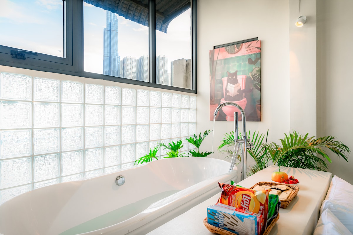 Discover a luxurious private retreat in the heart of the city. Just 3 minutes from Rach Chiec MRT, this 45m² smart home offers privacy, comfort, and style. Enjoy high-end amenities: app-controlled lighting, 85” & 55” 4K TVs with Netflix & Apple TV, immersive Apple HomePod sound, customizable mood lighting, and a 2-meter spa-style soaking tub. Perfect for couples, business travelers, and small families.
