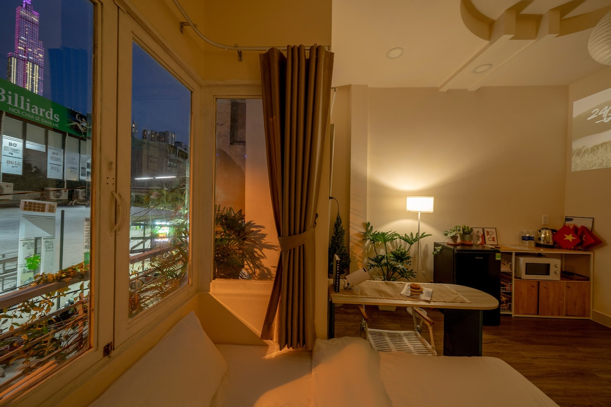 Enjoy ultimate convenience when you stay at this centrally located spot. - 12 minutes by car from TSN Airport/D1 - An airy room with large windows, ensuring a clean and refreshing atmosphere. - The room is fully equipped with modern amenities: air condition, projector, Wi-Fi, refrigerator, essential utensils... - Surrounded by many coffee shops, local restaurants, nails and hair salons... After a day of exploring the city, unwind with a cup of tea on the rooftop and enjoy the city night breeze.