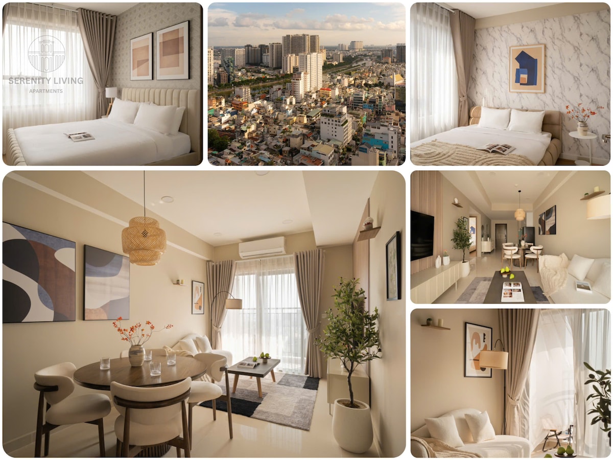 Trải nghiệm không gian sống hạng sang tại Duplex Penthouse mới xây, phong cách Wabi-Sabi độc bản. Tận hưởng tầm nhìn ôm trọn sông Sài Gòn, cầu Ba Son và Quận 1 từ cửa kính full-height, đặc biệt đẹp về đêm. • Vị trí kim cương: 5-10 phút đi bộ đến Công viên bờ sông & Metro Ba Son. • Nội thất xa xỉ: đàn Piano, Smart TV 86", đèn chùm lớn, bồn tắm thư giãn. • Không gian: 3 phòng ngủ, tràn ngập ánh sáng, lý tưởng cho 4-6 người.