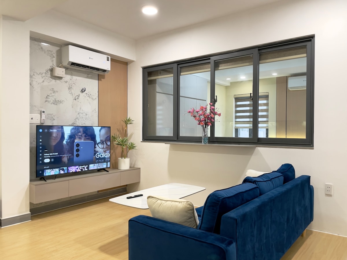 Modern 2 bedrooms apartment with amazing river view for either individuals, families or groups. Within 50 meters, you can easily walk to Lotte Cinema in TNL Plaza, Starbucks, Supermarket, etc. We offer great service with everything you need for your trip such as: - 5 minutes to District 1, 2,3,5,7,8. -2 bedrooms with 2 bathrooms. -Full-equipped kitchen. -3 Air-conditioners -Washing machine &refrigerator, rapid boil kettle. -Wifi and 43-inch TCL flat-screen TV. -Shampoo, towels, hair dryer, etc.