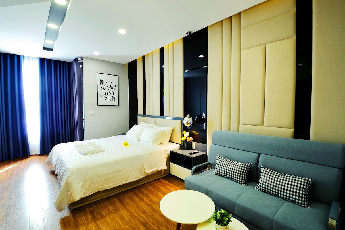 This unique place is designed for a luxury-in-style experience. With a smart sliding door, your living room and bed room are easy connected to maximize spacious 50m2 house. Walking on the BaSon bridge between the condo and D1, you can feel the breeze of Saigon river and spectacular view of the city. By just 5 to 10 min on cab, you can get to city center.