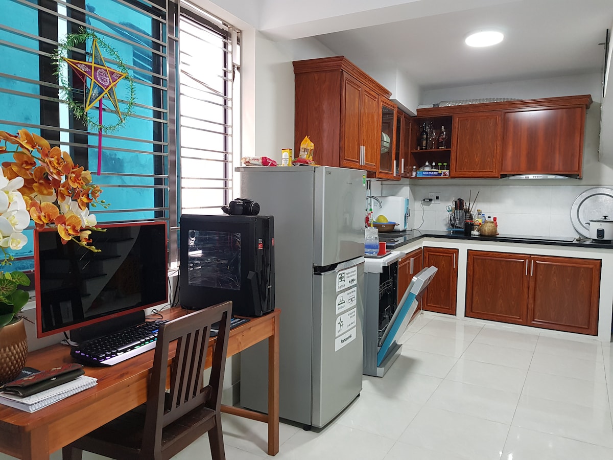 Our beloved house is located in a quiet alley at Nam Tu Liem district, and about 3kms from My Dinh stadium and Crowne Plaza. It was finished in August, 2019. We have 3 bedrooms: the first one is for by us - a young friendly couple, the second one is planed for our kids in the future, which is next to our room. The third one is for our parents in the future to stay with us when they can’t take care of each other in hometown. Accordingly, there are 2 spare rooms now for you all to make friends.