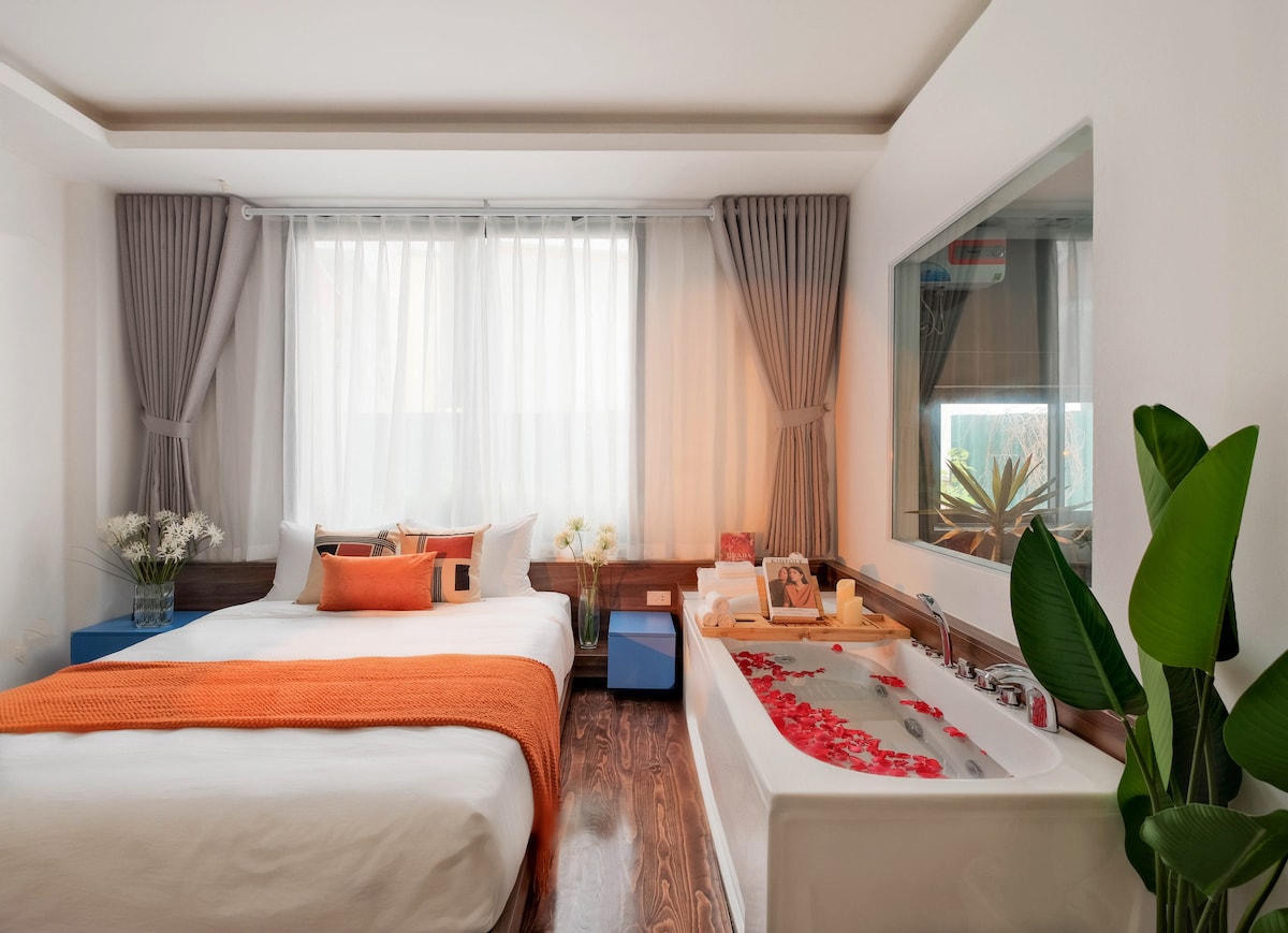 Enjoy Hanoi’s Old Quarter from a modern retreat just steps from the iconic TRAIN STREET. This apartment features a SUPER KING SIZE BED, A COMFORT SOFA, and luxury bathroom with shower and WOODEN BATH TUB. Cook in your PRIVATE KITCHEN and unwind with the 100-INCHES PROJECTOR and Wi-Fi. A LARGE SOUNDPROOF WINDOW offers lively street views, blending Hanoi’s charm with home comforts. Ideal for travelers seeking a unique and tranquility stay in the heart of the city.