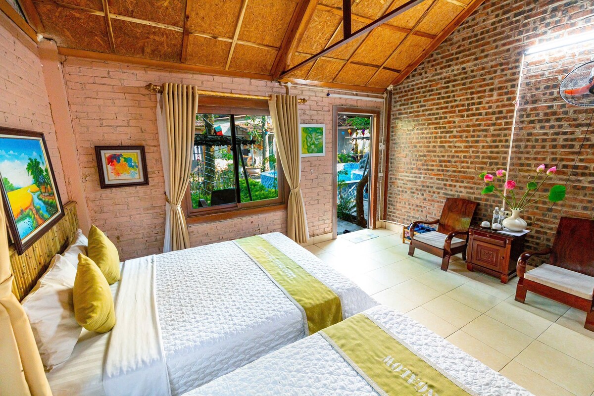 Escape to our charming double bungalow at Ninh Binh Family Homestay, designed for comfort and tranquility. This cozy retreat offers a perfect blend of modern amenities and traditional Vietnamese charm, making it an ideal getaway for couples . Enjoy the serene ambiance of our lush gardens and take a refreshing dip in the pool. Experience warm hospitality from our family and explore nearby attractions like Bai Dinh, Trang An, Hang Mua, Tam Coc, Hoa Lu Ancient Capital, and Cuc Phuong park.