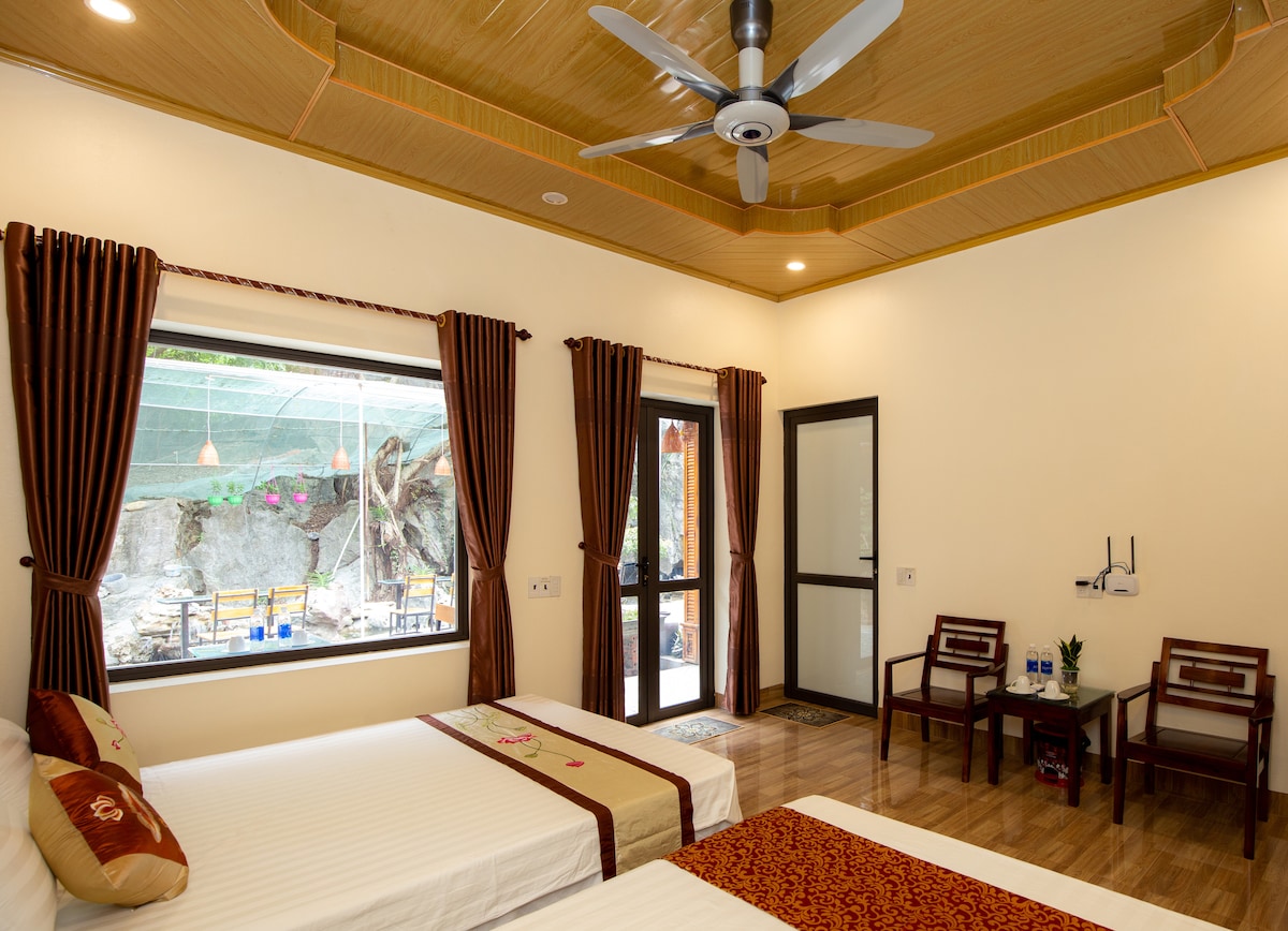 Trung tâm Khu du lịch Tam Cốc Bích Động. 13 phòng view núi và hồ bơi.Nhà hàng cung cấp dịch vụ tổ chức Gala Dinner, Pool Party, Nướng BBQ.Đội ngũ nhân viên chuyên nghiệp, nhiệt tình.Miễn phí bữa sáng buffet mỗi ngày,trà, cafe, nước suối đặt phòng hàng ngày,sử dụng dịch vụ bể bơi.Các điểm tham quan du lịch tại Ninh Bình:Bến thuyền Tam Cốc 500m, Bến Thung Nắng 3,6km, Thung Nham 6km, Hang Múa 3km, Phố Cổ Hoa Lư 10 km, Tràng An 12km, Chùa Bái Đính 25km.