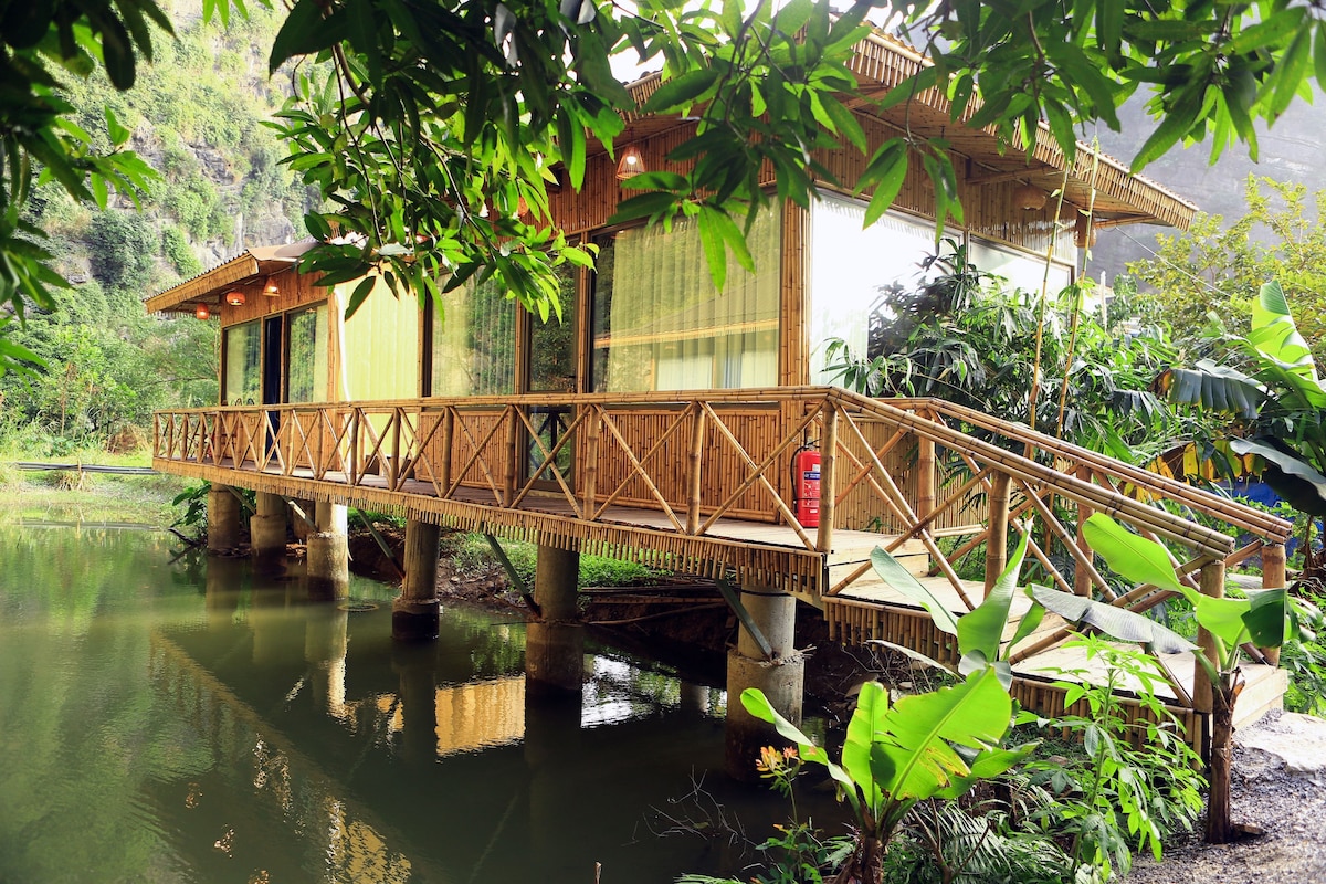 Located in the middle of the famous Trang An landmark, the property has beautiful views of the lake and mountains on both sides of the window.