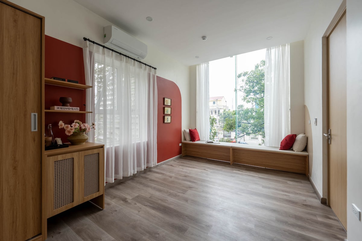 Phòng boutique dành cho 2 khách, nằm trong không gian xanh mát, yên tĩnh, thích hợp cho nghỉ dưỡng và thư giãn. Từ khu vực lưu trú, khách có thể tận hưởng khung cảnh thiên nhiên trong lành, nhiều cây xanh và không khí dễ chịu. Phòng được thiết kế gọn gàng, ấm cúng, đầy đủ tiện nghi cơ bản, phù hợp cho các cặp đôi hoặc du khách tìm kiếm sự riêng tư và bình yên trong kỳ nghỉ.
