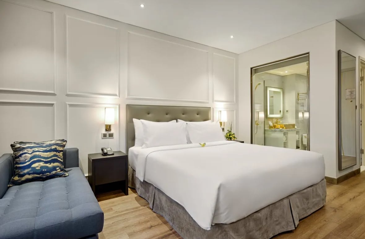 A calm and comfortable studio in Da Nang with rooftop infinity pool access and essential amenities for daily living. This privately managed 37 m² studio is located on a high floor of the Golden Bay / Wyndham complex in Son Tra. Bright and well maintained, it suits both short and long stays. The apartment includes a king-size bed, private bathroom, strong Wi-Fi, air conditioning, and a private balcony — a quiet, practical alternative to a hotel, ideal for long-term and monthly stays.