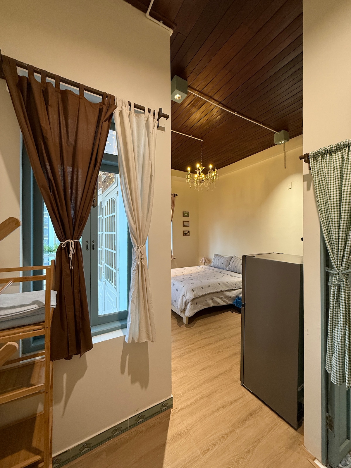 Căn phòng ban công view thành phố. Phòng rộng khoảng 20m², được decor theo phong cách vintage pha chút boho và cozy, tạo nên không gian ngẫu hứng nhưng đầy ấm áp. Ban công mở ra khung cảnh thành phố Đà Nẵng lung linh về đêm, còn ban ngày ánh sáng tự nhiên tràn ngập khắp phòng, mang đến cảm giác thư giãn, trong lành và thoải mái. Đây là nơi bạn có thể ngồi đọc sách, uống một tách cà phê buổi sáng, hoặc đơn giản là cùng người thương trò chuyện và ngắm nhìn thành phố một cách rất chill.