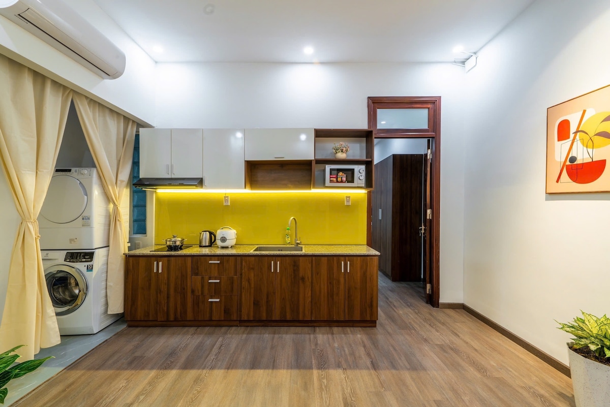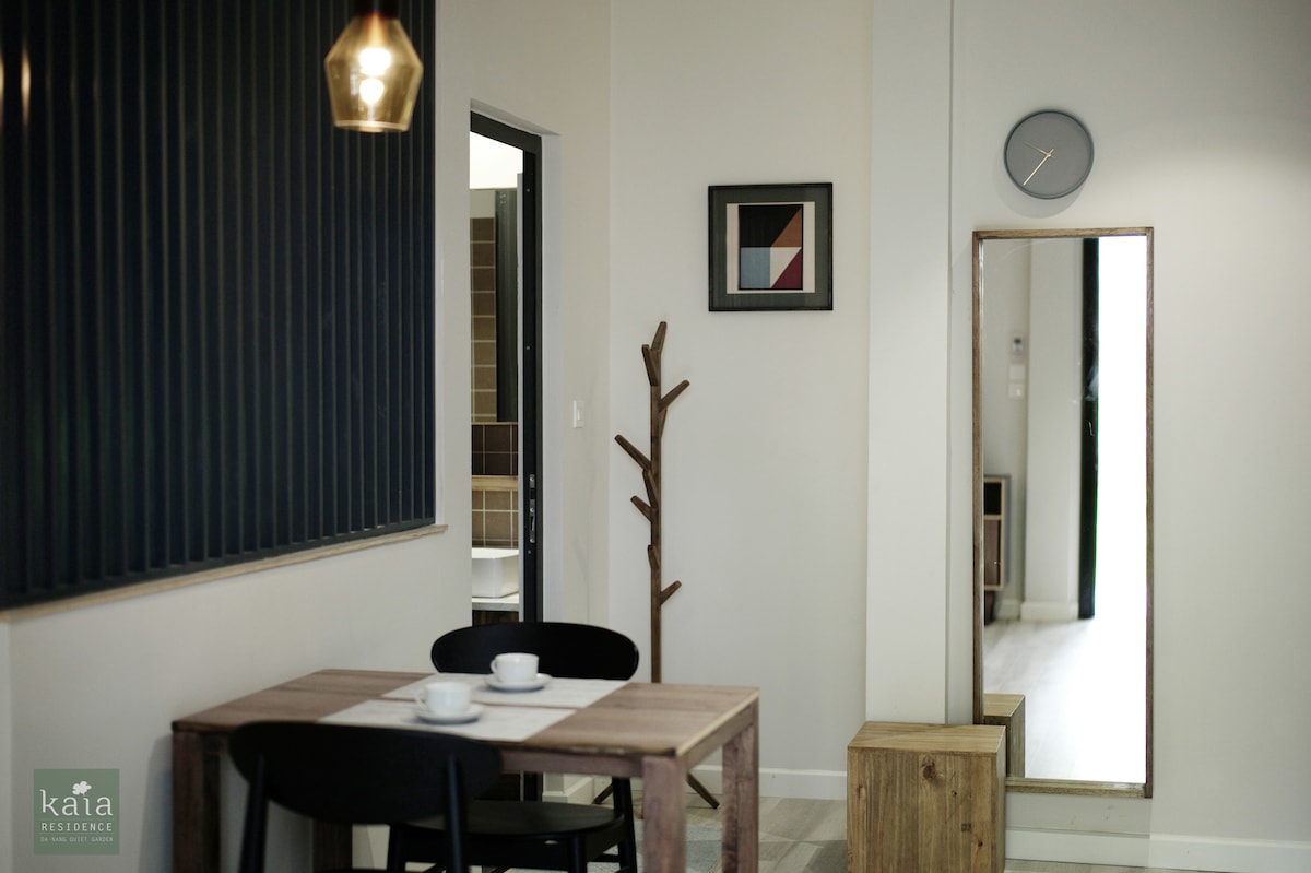 Nestled in an quiet road in center Da-Nang city, hidden behind a quiet garden, The Kaia Residence, a boutique stay with only 10 apartments, is a constant reminder of the beauty of the 20th century modern architecture. ✯ Green Isle at city heart ✯ Spacios room size 50m2 including terrace //unique interior designed ✯ 24/7 online and offline support ✯ Proper in-person check-in/check-out ✯ Welcome drinks & fruit ✯ Not Including Breakfast