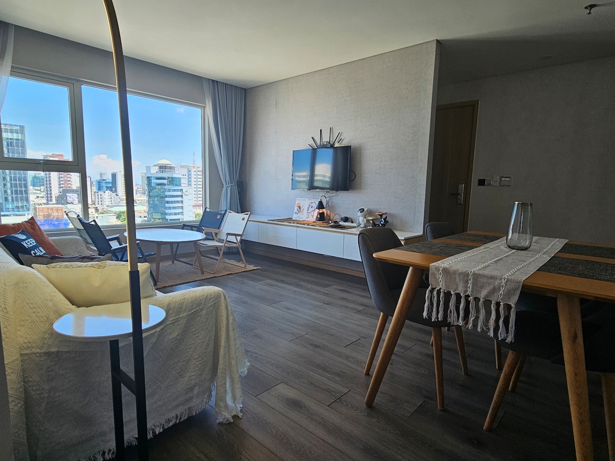 2베드 룸이 있는 넓은 공간에서 가족단위, 친구들끼리 지내기 좋은 숙소입니다. 집 앞에 24시간 한인편의점이 있고, 동네가 조용해서 오토바이 경적 소리로 인해 편안한 숙면을 취할 수 있습니다. 호스트가 같은 건물 다른 층에서 지내고 있어서 신속한 응대가 가능합니다:D 장점 *corner view로 한강과 시내 전경이 보이는 멋진 view *2bed & 2 화장실 (마스터룸에 화장실 같이 있습니다) *24시간 편의점이 집 바로 앞에 위치(다낭은 24시 편의점이 거의 없어요) *부엌이 있어 조리 가능 *소음없는 조용한 동네. *호스트가 같은 건물에서 상주하고 있어서 신속한 응대 가능(환전, 여행정보, 맛집정보, 저렴한 그랩 드라이버 소개등) *최고의 입지 -burger bros 도보 1분 -Madame Lan 도보 3분 -한시장 3분 -빈컴플라자 5분 -미케비치 7분 -공항 10분 -OQ pub 도보 3분 -goden pine pub 5분