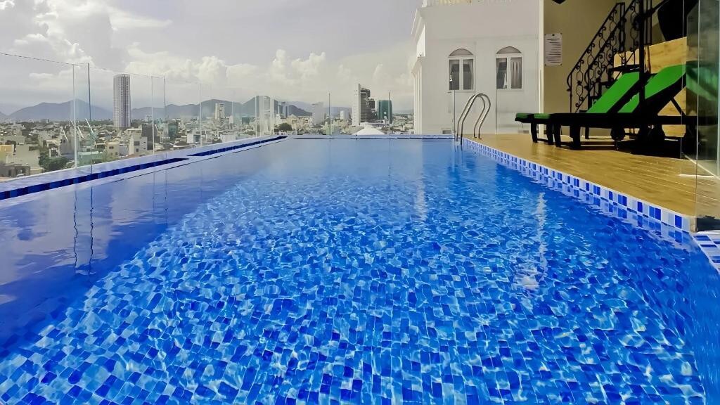 Santori is located right on Thanh Khe, Da Nang Bay beach, you will see Son Tra peninsula and Hai Van mountain range, The hotel has 7 floors, including 11 tourist apartments with high-end equipment, designed in the minimalist and elegant Mediterranean style of a sunny and windy sea. Restaurant, Cafe outdoor infinity swimming pool on the top floor of the hotel, you can relax and feel the wind and waves of Da Nang Bay.