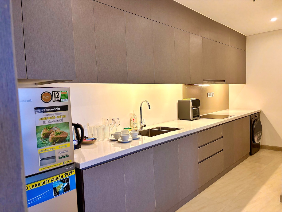The apartment has a beautiful view of the bridge and mountains, especially in the evening when the bridge is lit up, creating a romantic scene. The apartment is located in a sparsely populated area, quiet, not noisy, an ideal place to relax and enjoy a comfortable living space, in harmony with nature and the surrounding landscape. The 5-star infinity pool is located on the top floor of the building. You will be registered to use it for free as soon as you checkin