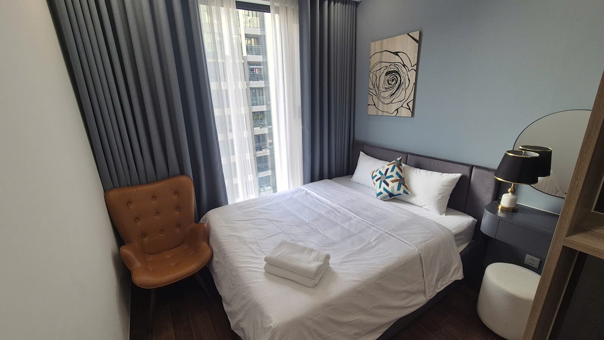 Căn hộ rộng 30m2 đầy đủ nội thất, khóa cửa mật mã, 30 phút là tới sân bay hoặc phố cổ. Bên trong tòa nhà có các tiện ích như Phòng tập thể dục, nhà hàng, quán cà phê, cửa hàng tiện lợi. Là chung cư sang trọng bậc nhất tại Việt Nam, quý khách sẽ thấy thoải mái khi lưu trú tại đây
