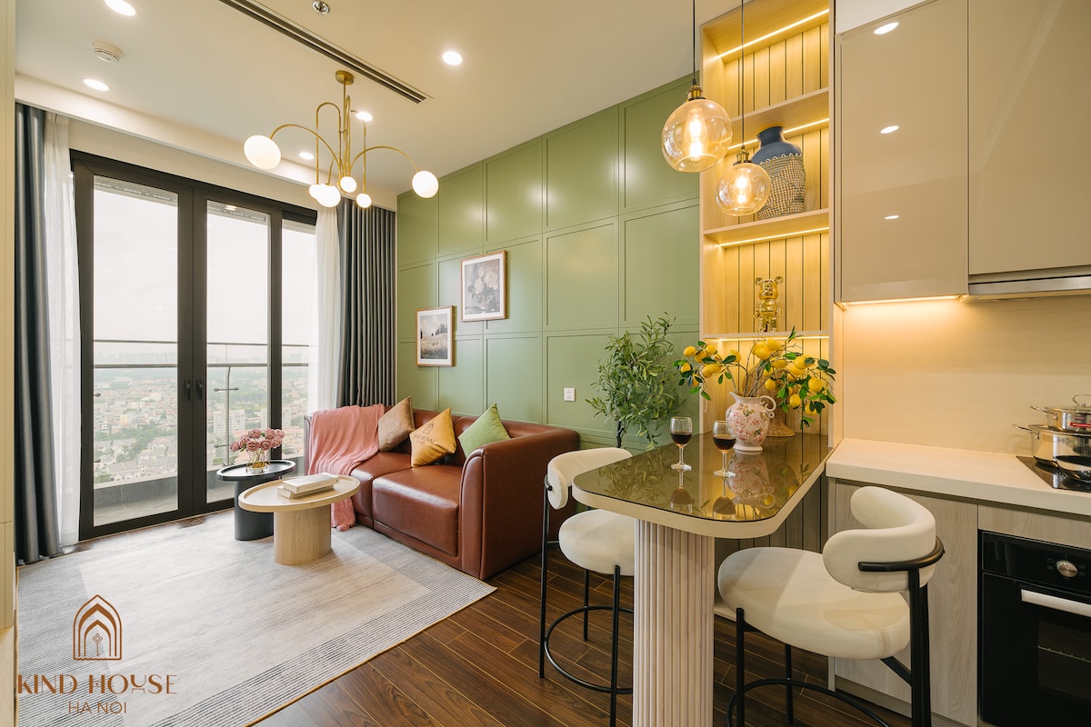 Luxurious and spacious 1 bedroom apartment with unique design only at Masteri West Heights! This is the only 1-bedroom apartment with a lake view in the building, the apartment has a very comfortable private office. The reception hall provides a warm and luxurious space of a luxury hotel, where you can experience luxury right at your home. Be welcomed as a Super VIP right from the lobby, with the person opening the door bowing elegantly as if entering the VIP area of a 5-star hotel.