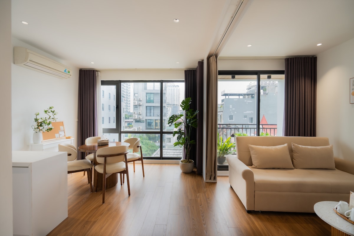 Spacious 1.5 BR Apartment w/ Balcony in Hanoi’s Western Quarter – PROMO! Less than 7 min to Old Quarter Steps from Somerset West Point & West Lake In the heart of Hanoi’s Western Quarter (Tây Hồ), surrounded by embassies, lakeside cafés, and trendy restaurants — enjoy peaceful streets, local charm & walkable lifestyle. ☆ Airport pick-up & visa discounts ☆ 24/7 support ☆ Hotel-quality bedding & essentials ☆ Private tours w/ locals